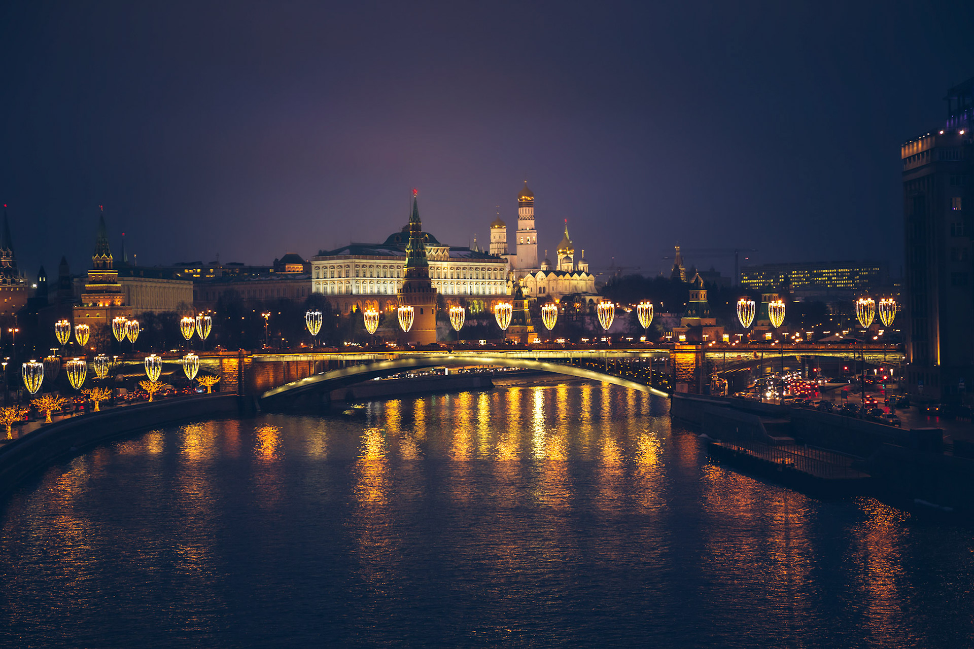 View from the river to the Cathedral of Christ the Saviour in Moscow